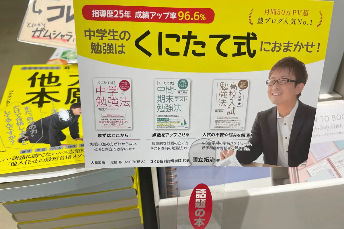 本当のことを言うと実は逆でして、「さくら個別指導学院の指導」を書籍にまとめたものが「くにたて式」のシリーズなのです。塾長の國立が書いた本がこちらのシリーズなのです。