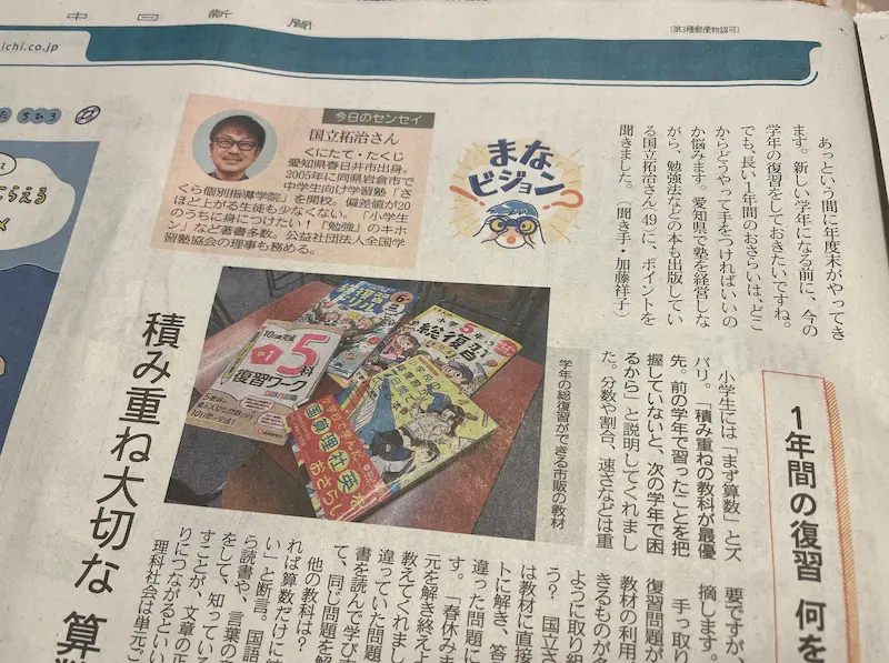 2024年2月に中日新聞より取材を受け、「1年間の復習の仕方」についての記事が掲載されました。