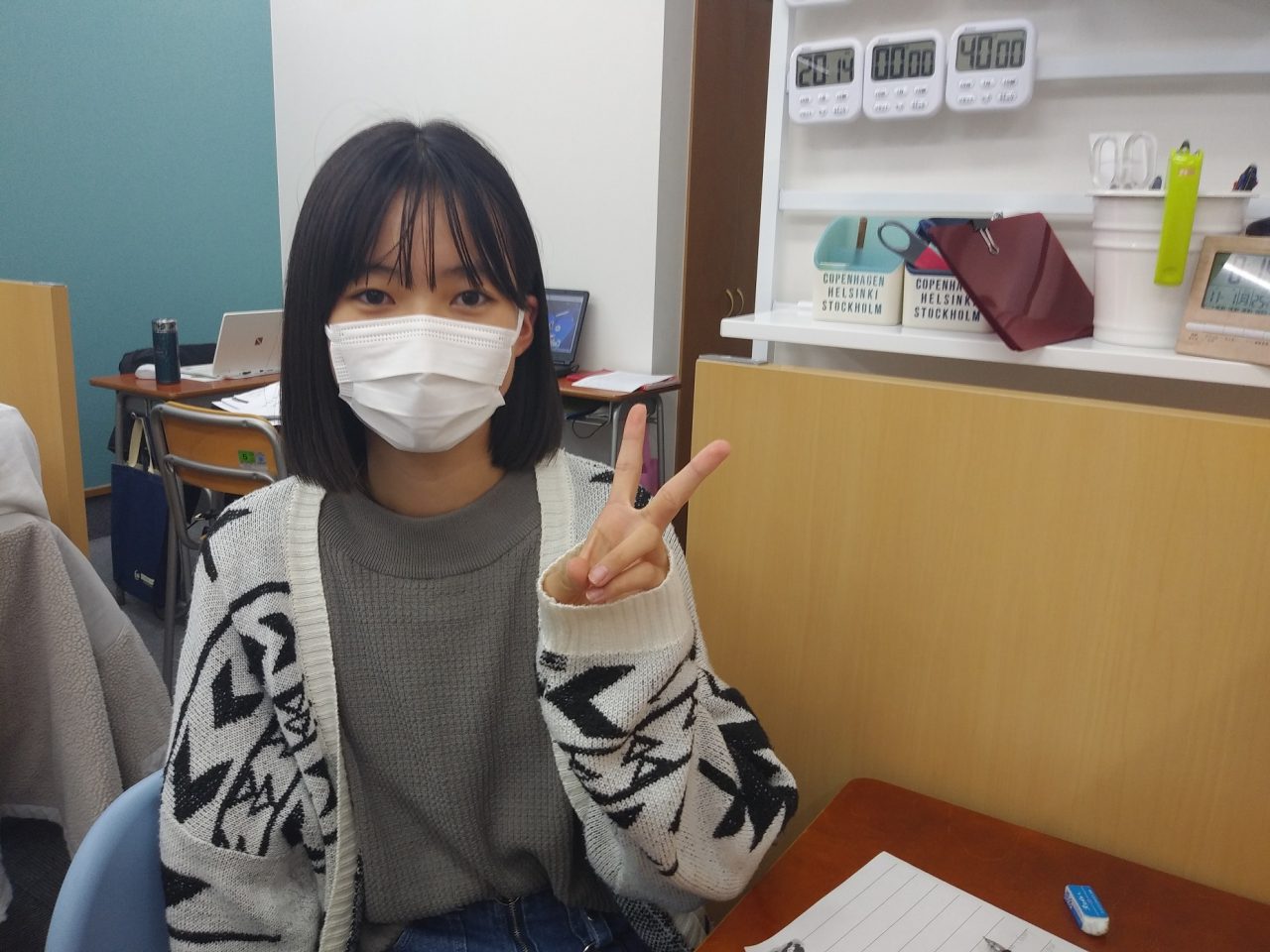 近隣中学の中3生は、期末前で教室を開けています。