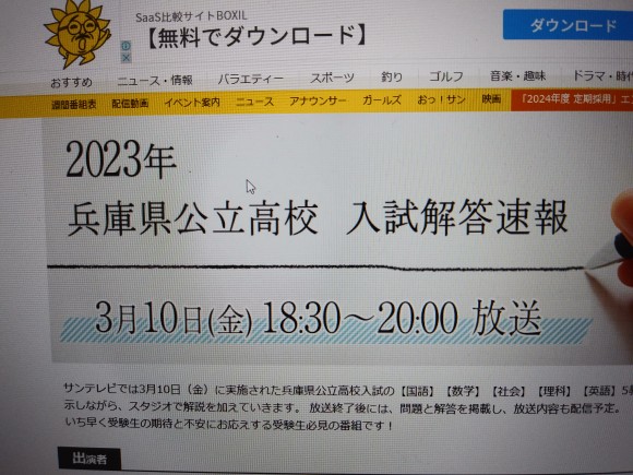 兵庫公立高校 入試解答速報!!!~サンテレビ 18:30~~