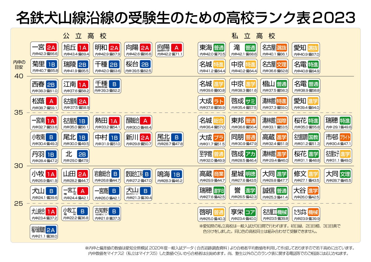 私立の受験校は名城は立地的にも多くの人が受けるでしょう。名電もそうですね。